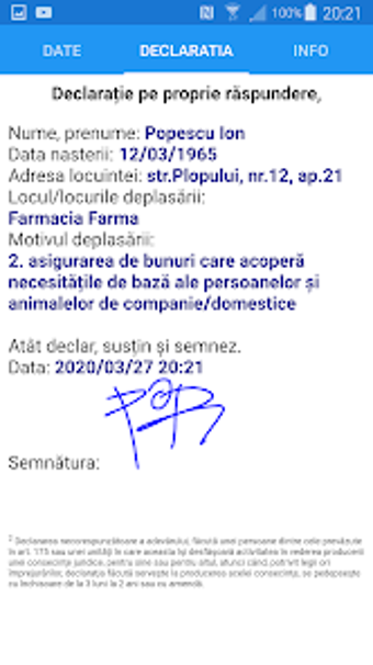 يسهل استخدام التطبيق وتصفحه، مع تصميم بسيط ومباشر. يمكن للمستخدمين ملء النموذج بسرعة وكفاءة، مما يضمن الامتثال للوائح المحددة في الأمر العسكري. كما يتوفر التطبيق باللغة الرومانية، مما يجعله متاحًا لجمهور أوسع. بشكل عام، "Declaratie pe Propria Raspunde" هو أداة مفيدة لأولئك الذين يحتاجون إلى إكمال الإعلان عن مسؤوليتهم الخاصة بسرعة وسهولة.